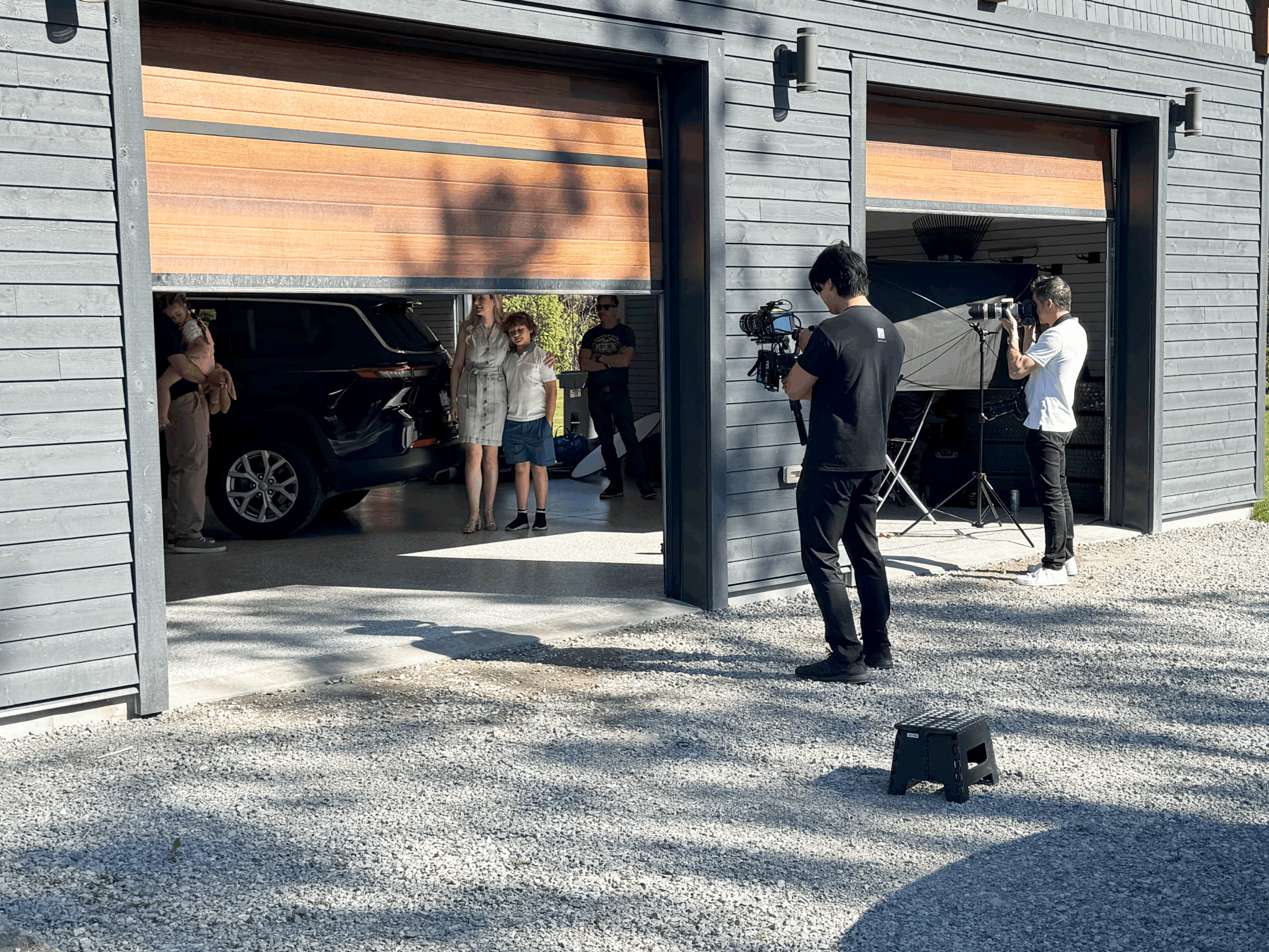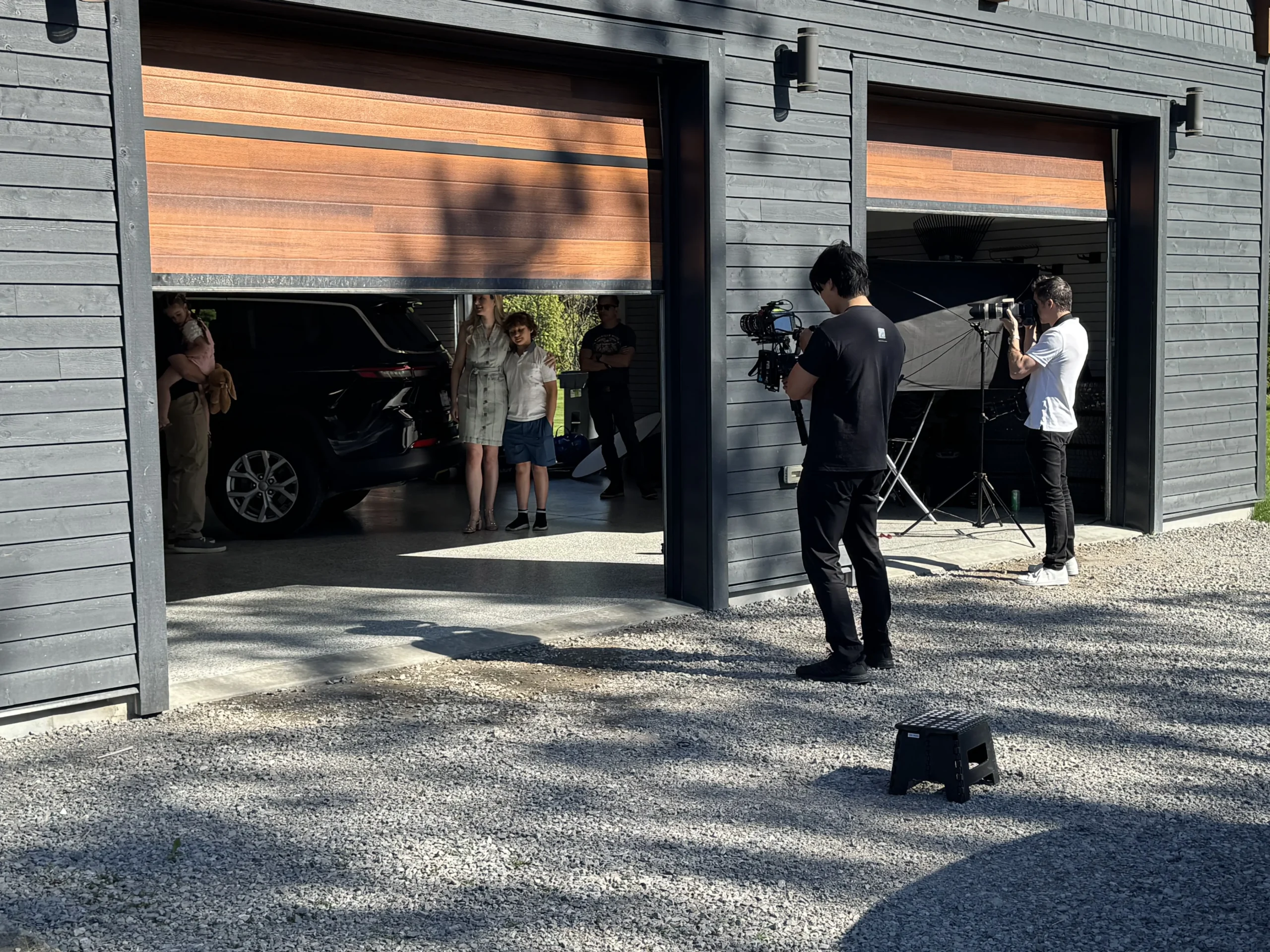 I spent a day on location in Uxbridge, Ontario, playing the role of an older sibling in a family at a stylish garage.